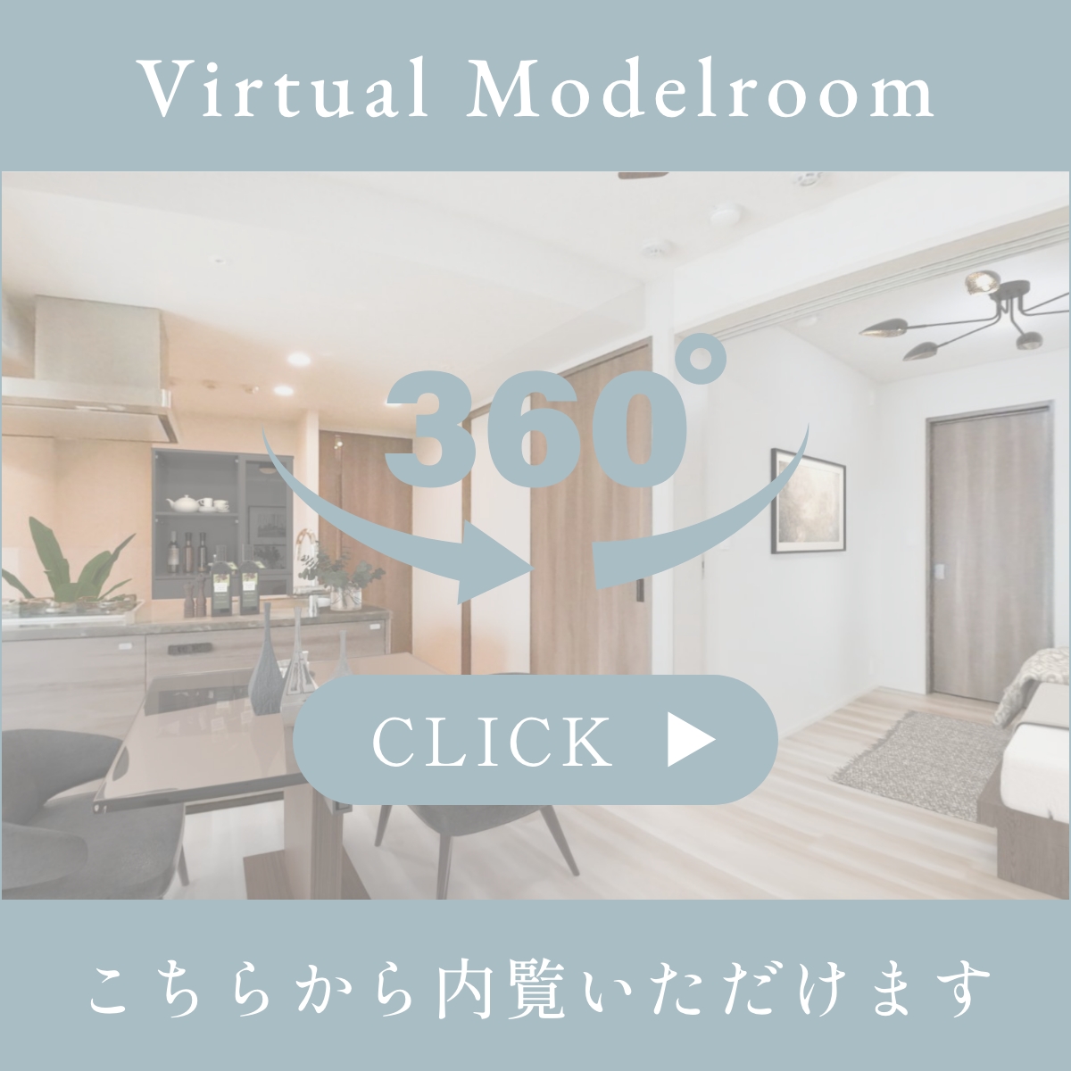 ※掲載の「Virtual Modelroom」は実際の建物内の部屋を撮影(2025年8月)したものに、家具等をCGで合成しております。家具等の寸法は実際と異なる場合がございますので参考としてご参照ください。家具等はオプションとなりますので実際には設置されておりません。